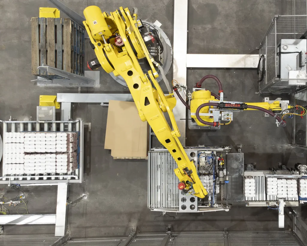 Sistema de paletizado automático y flexible para líneas de producción múltiples
